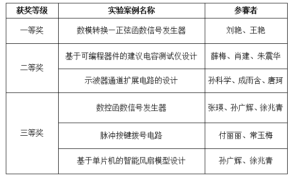 表1.电工电子实验案例设计竞赛获奖名单