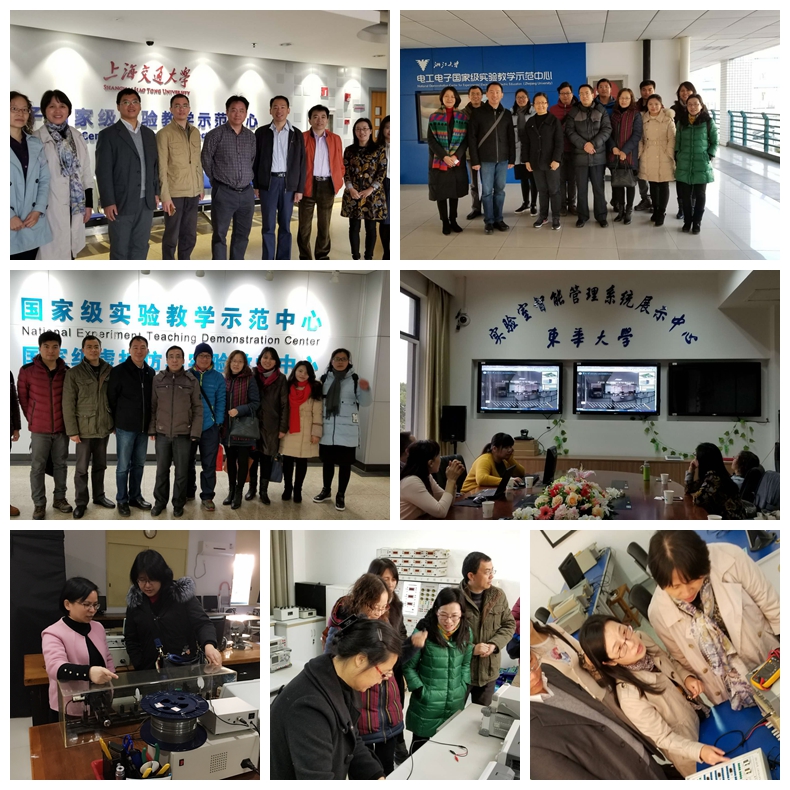 为推进我院实验教学与改革、信息化建设、大学生双创教育等工作,近日,由肖建副院长带队,电工电子实验教学中心、电子与光学实验教学中心、院创新中心部分教师赴上海交通大学、东华大学、南京理工大学、浙江大学等开展调研学习。我院教师悉心听取各高校电工电子实验中心、工程训练中心负责人在信息化建设、实验教学改革等方面的经验报告。肖建副院长也介绍了我院近年来在实验室建设和大学生创新创业等方面工作取得的成绩和对诸多问题的思考,希望通过相互交流,借鉴各高校的先进做法,进一步创新思路,拓展方法。教师们参观了各高校的实验室,和各高校同仁还就实验室管理、实验教学、学科竞赛等方面开展开了深入交流。